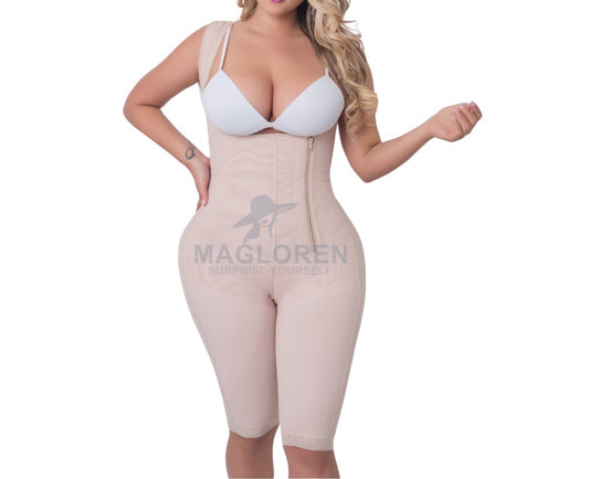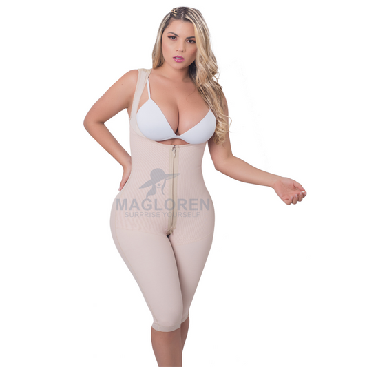 Descripción Faja modeladora con busto integrado, ajustable en tres niveles para una silueta definida y...