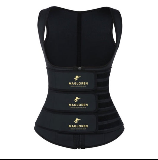 Made for working out , this Black Latex Workout Waist Trainer Vest Three Belts Weight...