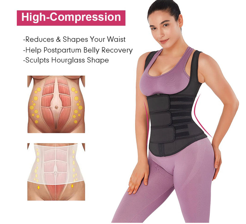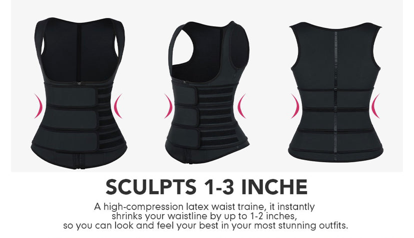 Made for working out , this Black Latex Workout Waist Trainer Vest Three Belts Weight Loss can be slipped on in seconds , while maintaining the firm compression you want .