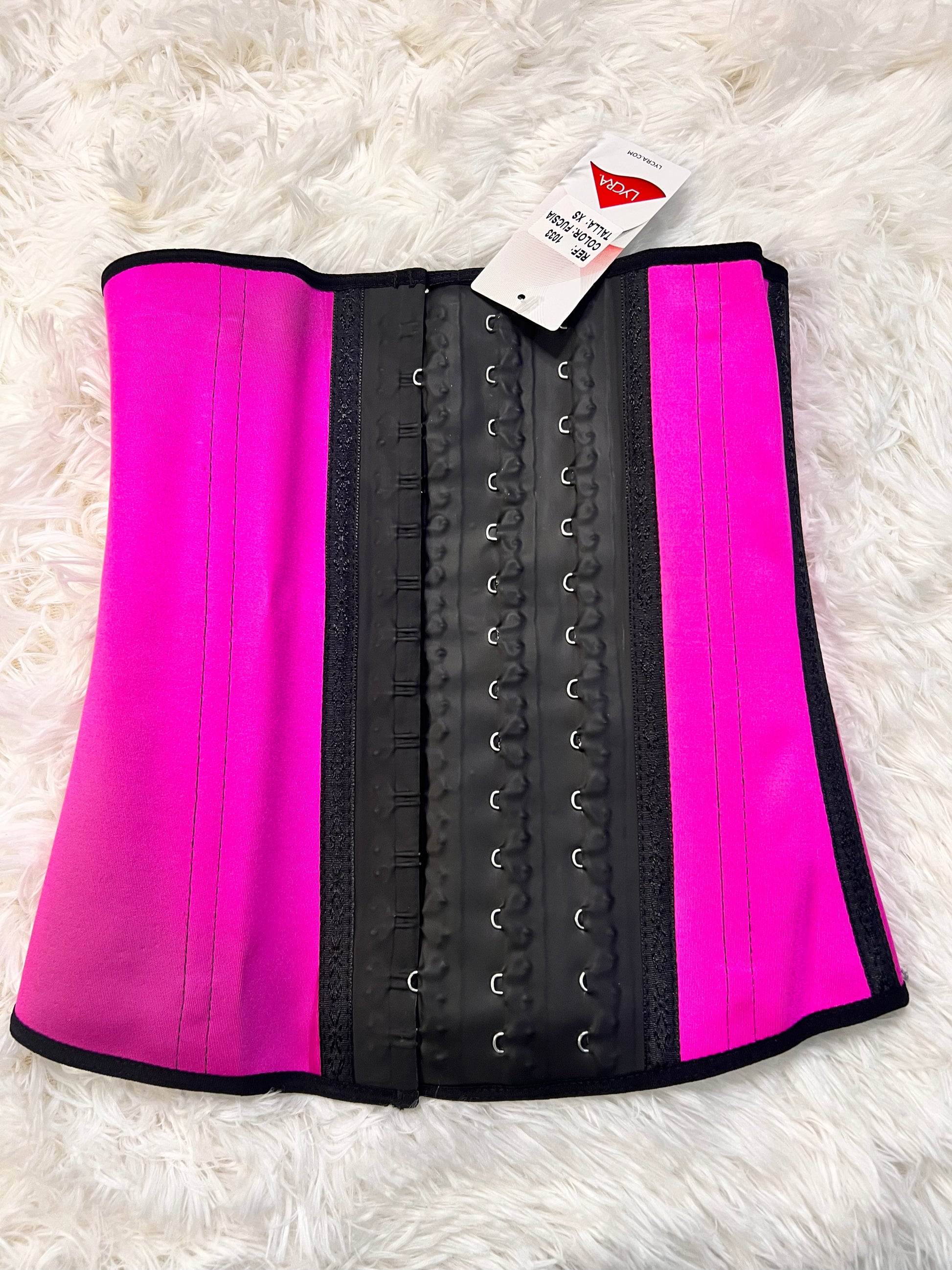 Cinturilla moldeadora en látex de las mas alta calidad, con abrochadura vulcanizada de 3 hileras y 13 ganchos