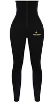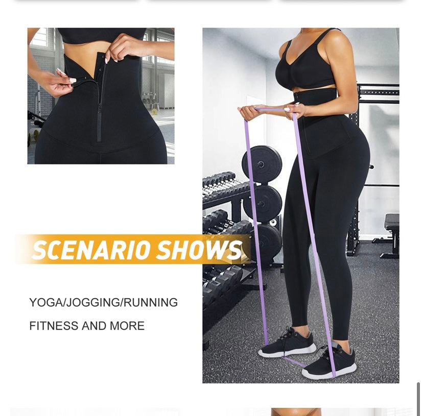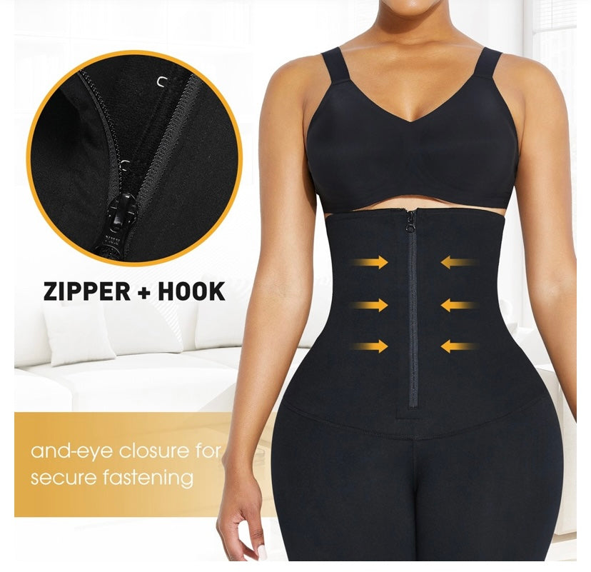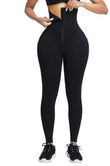 Use this Black Waist Trainer 2-In-1 Leggings With Zipping Flatten Tummy to make your waist and legs slimmer.
